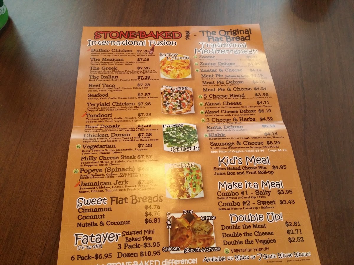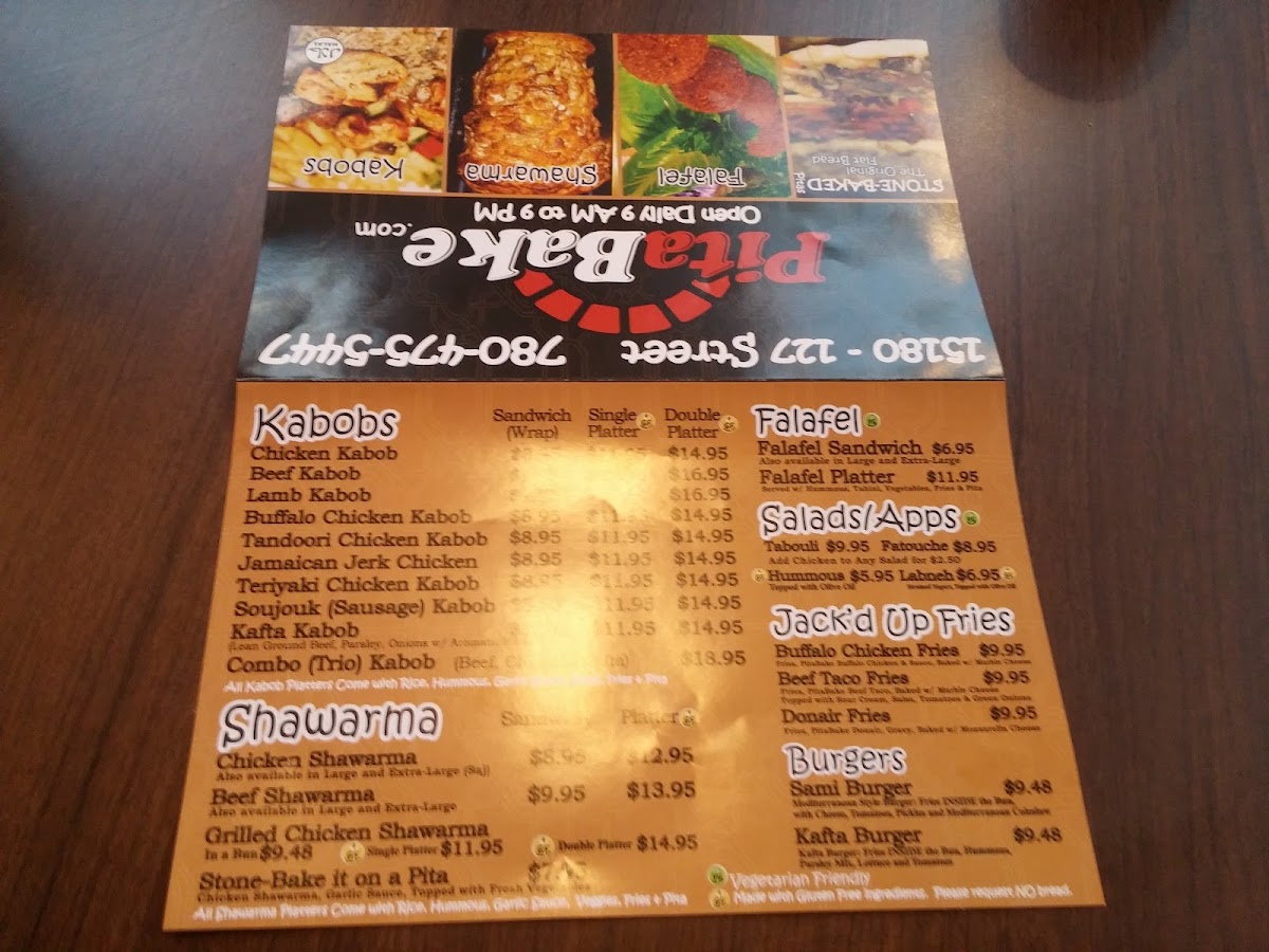 PitaBake Inc. Menu